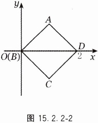 7. 如图15.2.2 - 2,在平面直角坐标系中,正方形$ABCD的顶点B$,$D的坐标分别为B(0,0)$,$D(2,0)$,且$A$,$C两点关于x$轴对称,则点$C$的坐标为