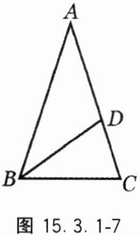 2. 如图 15.3.1 - 7,在△ABC 中,AB = AC,BD 平分∠ABC,∠A = 36°,则图中等腰三角形的个数为(