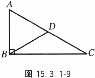 5. 如图 15.3.1 - 9,在△ABC 中,∠ABC = 90°,点 D 在 AC 边上,BD = DC,AC = 6,则 AD =