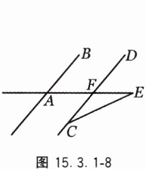 3. 某城市几条道路的位置关系如图 15.3.1 - 8 所示,道路 AB // CD,道路 AB 与 AE 的夹角∠BAE = 50°. 城市规划部门规划新修一条道路 CE,要求 CF = EF,则∠E 的度数为(