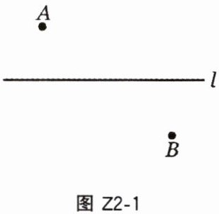 1. 如图 Z2 - 1,点 A,B 分别是直线 l 异侧的两个点,如何在 l 上找一个点 C,使得点 C 到点 A,B 的距离之和最小?