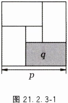 7. 已知长方形的长宽之和为 $p$,面积为 $q$,设宽为 $x$,根据图形面积的关系可构造方程 $x(p - x)=q$。早在公元 $3$ 世纪,我国汉代的赵爽借助图(由四个这样的长方形围成一个大正方形,中空的部分是一个小正方形)将 $x$ 用 $p$,$q$ 表示为 $x=\frac{1}{2}(p-\sqrt{p^{2}-4q})$,从而得到形如 $-x^{2}+px = q$ 的一元二次方程其中一个根的求根公式。结合图 21.2.3 - 1,$x$ 的表达式中 $\sqrt{p^{2}-4q}$ 所表示的几何量是