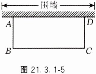 6. 如图 21.3.1 - 5,邻边不相等的矩形花圃 $ ABCD $,它的一边 $ AD $ 利用已有的围墙(可利用的围墙长度超过 $ 6 m $),另外三边所围的栅栏的总长度是 $ 6 m $。若花圃的面积为 $ 4 m^2 $,求 $ AB $ 的长。