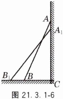 7. 如图 21.3.1 - 6,一架 $ 2.5 m $ 长的梯子 $ AB $ 斜靠在竖直的墙 $ AC $ 上,这时点 $ B $ 到墙 $ C $ 的距离为 $ 0.7 m $。