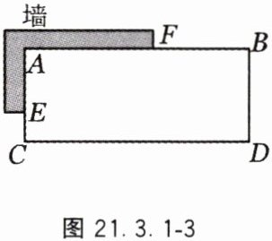 4. 为了促进劳动课程的开展,某学校准备利用一处墙角和一段篱笆围建一个矩形生态园。如图 21.3.1 - 3,墙 $ AF = 8 m $,$ AE = 4 m $,篱笆长为 $ 28 m $。设 $ CD $ 的长为 $ x m $,生态园的一边由墙 $ AF $ 和一节篱笆 $ BF $ 构成,另一边由墙 $ AE $ 和一节篱笆 $ CE $ 构成,其他边由篱笆 $ CDB $ 围成。