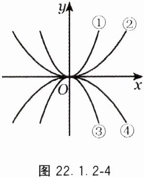 16. 如图 22.1.2 - 4,四个二次函数的图象中,分别对应的是:① $ y = ax^{2} $;② $ y = bx^{2} $;③ $ y = cx^{2} $;④ $ y = dx^{2} $,且①与③,②与④分别关于 $ x $ 轴对称。