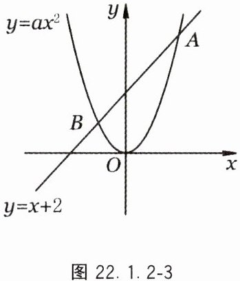 (2) 如图 22.1.2 - 3,设直线 $ y = x + 2 $ 与抛物线 $ y = ax^{2} $ 的交点分别为 $ A $,$ B $,试确定 $ A $,$ B $ 两点的坐标;