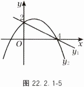 9. 如图 22.2.1 - 5,$ y_{1} $ 为一次函数,$ y_{2} $ 为二次函数,请根据图象回答下列问题:
