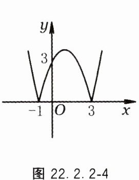 10. 函数 $ y = |ax^{2} + bx + c| $($ a > 0 $,$ b^{2} - 4ac > 0 $)的图象是将函数 $ y = ax^{2} + bx + c $($ a > 0 $,$ b^{2} - 4ac > 0 $)的图象 $ x $ 轴上方部分保持不变,下方部分沿 $ x $ 轴向上翻折而成的(如图 22.2.2 - 4)。给出下列结论:① $ 2a + b = 0 $;② $ c = 3 $;③ $ abc > 0 $;④将图象向上平移 1 个单位长度后与直线 $ y = 5 $ 有 3 个交点。其中结论正确的是(