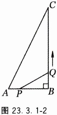 8. 如图 22.3.1 - 2,在 $ \triangle ABC $ 中, $ \angle ABC = 90° $, $ AB = 6 $ cm, $ BC = 12 $ cm,点 $ P $ 从点 $ A $ 开始沿 $ AB $ 边向点 $ B $ 以 $ 1 $ cm/s 的速度移动,点 $ Q $ 从点 $ B $ 开始沿 $ BC $ 边向点 $ C $ 以 $ 2 $ cm/s 的速度移动。如果 $ P $, $ Q $ 分别从点 $ A $, $ B $ 同时出发。