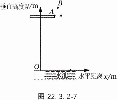 7. 在一次跳水比赛过程中,某运动员选择了一个极具难度的 $ 207C $(向后翻腾三周半抱膝). 如图 22.3.2 - 7 所示,建立平面直角坐标系 $ xOy $. 如果她从点 $ A(3, 10) $ 起跳后的运动路线可以看作抛物线的一部分,从起跳到入水的过程中,她的竖直高度 $ y $(单位:$ m $)与水平距离 $ x $(单位:$ m $)近似地满足函数关系式 $ y = a(x - h)^2 + k $($ a < 0 $).