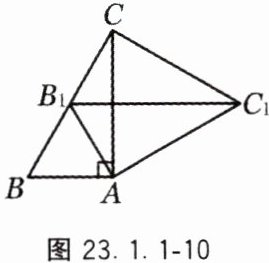 10. 如图23.1.1-10,在$Rt\triangle ABC$中,$\angle BAC = 90°$,$AB = 2$,将$\triangle ABC$绕点$A$按顺时针方向旋转至$\triangle AB_1C_1$的位置,点$B_1$恰好落在边$BC$的中点处,则$CC_1$的长为