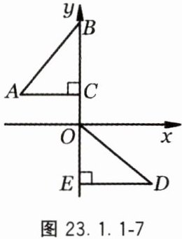 7. 如图23.1.1-7,在平面直角坐标系中,点$B$,$C$,$E$在$y$轴上,$Rt\triangle ABC$经过变换得到$Rt\triangle ODE$,若点$C$的坐标为$(0,1)$,$AC = 2$,则这种变换可以是 (