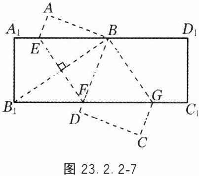 8. 如图 23.2.2 - 7,将矩形 $A_1B_1C_1D_1$ 沿 $EF$ 折叠,使点 $B_1$ 落在 $A_1D_1$ 边上的 $B$ 点处;沿 $BG$ 折叠,使点 $D_1$ 落在 $D$ 点处且 $BD$ 过点 $F$.