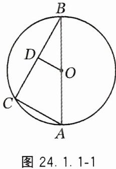 4. 如图 $ 24.1.1 - 1 $,已知 $ AB $ 是 $\odot O$ 的直径,点 $ C $ 在 $\odot O$ 上,点 $ D $ 是 $ BC $ 的中点.若 $ AC = 10\mathrm \,{cm} $,则 $ OD = \_\_\_\_\_\_\mathrm