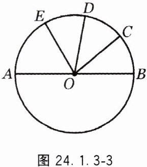4. 如图 24.1.3 - 3,$AB$ 是$\odot O$的直径,$\angle AOE = 60^{\circ}$,$C$,$D$ 是$\overset{\frown}{BE}$上的三等分点,则$\angle COE$的度数是(