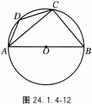 1. 如图 24.1.4-12,四边形 $ABCD$ 内接于 $\odot O$,$AB$ 为 $\odot O$ 的直径,$\angle ADC = 130^{\circ}$,连接 $AC$,则 $\angle BAC$ 的度数为