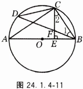 13. 如图24.1.4 - 11,$AB$是$\odot O$的直径,$C$是$\overset{\frown}{BD}$的中点,$CE\perp AB$于点$E$,$BD$交$CE$于点$F$。