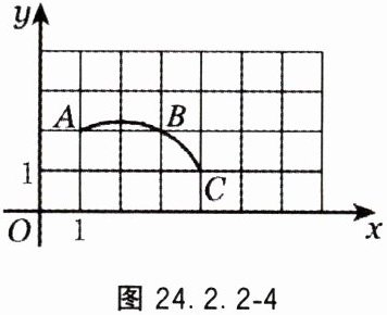 11. 如图 $24.2.2 - 4$,在平面直角坐标系中,过格点 $A$,$B$,$C$ 作一圆弧,点 $B$ 与下列格点的连线中,能与该弧相切的是(