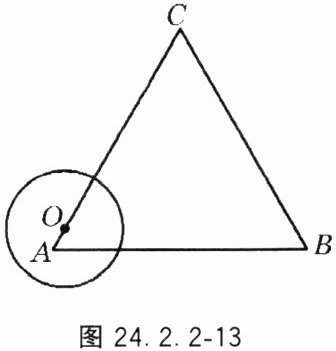 7. 如图 24.2.2 - 13,$\triangle ABC$ 为等边三角形,$AB = 6$,动点 $O$ 在 $\triangle ABC$ 的边上从点 $A$ 出发沿着 $A→C→B→A$ 的路线匀速运动一周,速度为每秒 $1$ 个单位长度,其中以 $O$ 为圆心,$\sqrt{3}$ 为半径的圆在运动过程中与 $\triangle ABC$ 的边第二次相切是出发后的(