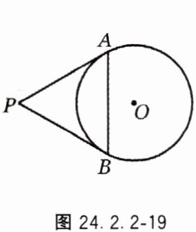 1. 如图 24.2.2 - 19,已知 $ PA $,$ PB $ 分别切 $ \odot O $ 于点 $ A $,$ B $,$ \angle P = 60^{\circ} $,$ PA = 8 $,则弦 $ AB $ 的长为 \_\_\_\_.