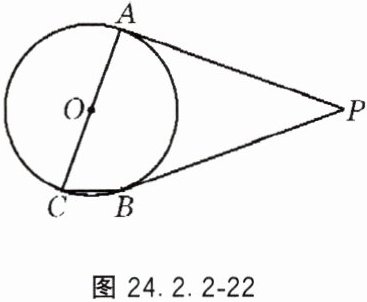 4. 如图 24.2.2 - 22,$ PA $,$ PB $ 是 $ \odot O $ 的切线,$ A $,$ B $ 为切点,$ AC $ 是 $ \odot O $ 的直径,$ \angle ACB = 70^{\circ} $,求 $ \angle P $ 的度数.