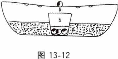 。如图13 - 12所示的是一个应急净水器,在大容器中倒入不能直接饮用的水(如泥水、海水等),将杯子放在容器中央,用塑料膜将容器口封好(容器边留1个小缝隙),上面压一块小石头,使塑料膜形成一个凹面,将制成的净水器放在阳光下,几小时后杯中就可收集到从塑料膜上滴下的纯净水,这种净水器主要利用了水的蒸发