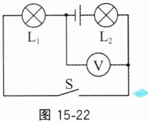 4. 如图15-22所示,电源电压保持$6V$,闭合开关$S$后,电压表的示数是$1.8V$,则$L_{2}$两端的电压是(