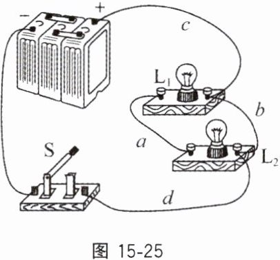 例1 灯 $ L_1 $ 和 $ L_2 $ 组成如图 15 - 25 所示的电路,若开关 $ S $ 闭合,则(