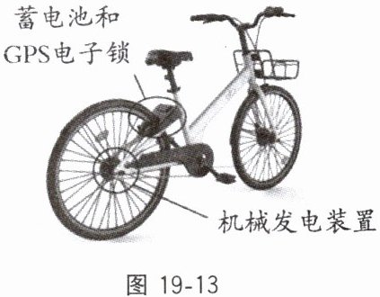 4. 如图 19 - 13 所示为某款共享单车,GPS 电子锁能接收云端发来的开锁指令,驱动电机开锁。传动轴内有一台微型发电机,在骑行的时候,这个发电机能为车锁里面的蓄电池充电。下列与微型发电机的工作原理相同的是(