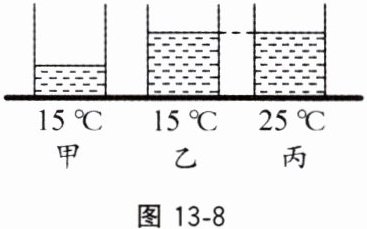 6. 甲、乙、丙三个同规格容器内装有水,三杯水体积、温度的关系如图13-8所示,分析可知: