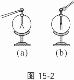 例2 丝绸摩擦过的玻璃棒带电,是因为玻璃棒在摩擦的过程中电子,若把它和不带电的验电器金属球接触,会发现验电器金属箔片张开,如图15-2(a)所示,原因是。若将另一带电小球与验电器金属球接触,发现箔片闭合,如图(b)所示,则此带电小球带电。