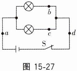 2. 如图15-27所示电路中,闭合开关后,比较a、b、c、d四处电流的大小,其中一定正确的是(
