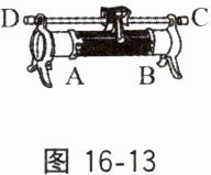 (3)电流表是测量电路中电流的仪表,必须串联在电路中,要想知道电路中电流值的改变情况,需在电路中再串联一个电流表,增加一根导线即可。答案:(1)3;A、B;滑动变阻器允许通过的最大电流值为2A;(2)连线如图16-15所示;(3)串;一。