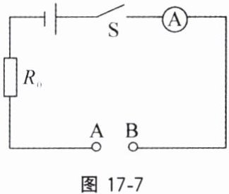 例 3 如图 17 - 7 所示的电路,电源电压保持不变,在 A、B 间接入 10 Ω 的电阻时,电流表的示数为 0.5 A,接着在 A、B 间换接 20 Ω 的电阻,此时电流表的示数可能是()。