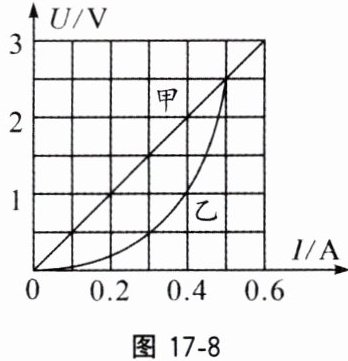 2. 如图 17 - 8 所示是电阻甲和乙的 $U - I$ 图像,小明对图像信息作出的判断正确的是(
