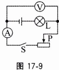 7. 将滑动变阻器按如图 17 - 9 所示连接到电路中。滑片向右移动时电压表的示数