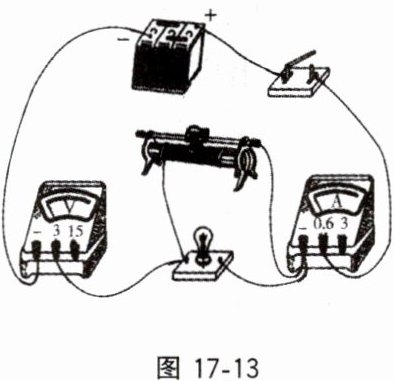 例1 图17 - 13是小红连接的测定正常工作电压为$2.5V$小灯泡电阻的实验电路。