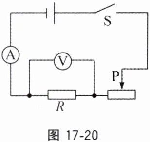 例3 用如图17-20所示的电路探究通过导体的电流与电阻的关系。器材有:干电池3节(电压约为4.5V),开关、滑动变阻器(20Ω,2A)、电压表、电流表各一个,阻值为5Ω、10Ω、15Ω、20Ω的定值电阻各一个,导线若干,连接好电路,设定加在电阻两端的电压为2V进行探究,发现在获得三组数据后无法再进行实验,为了继续使用前面三组数据,利用现有器材完成探究,下列方案中可行的是()。