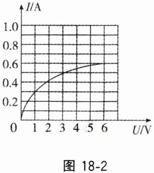 例2 灯泡L的额定电压为6V,小明通过实验测得其电流随电压变化的曲线如图18-2所示。由图可知,当灯泡L正常发光时,通过其灯丝的电流是A,此时灯泡L的电阻是Ω;通过调节滑动变阻器,使灯泡L两端的电压为3V,则此时灯泡L消耗的实际功率为W。