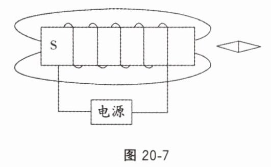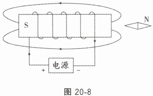 答案如图 20-8 所示(在对应位置标出磁感线方向为从右向左;小磁针右端为 N 极;电源左端为“+”,右端为“ - ” )。