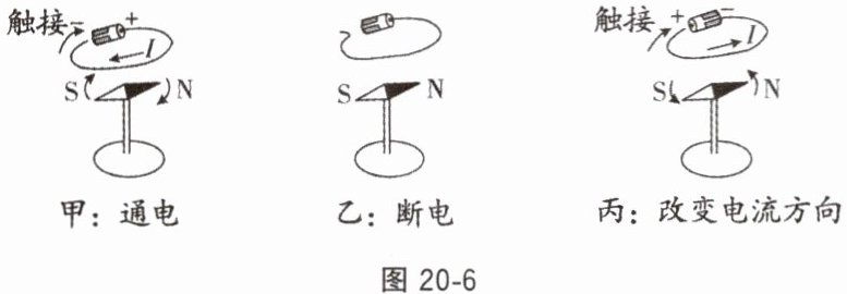 例 1 图 20 - 6 是奥斯特曾经做过的实验,观察比较甲、乙两图,可得到的实验结论是;观察比较甲、丙两图,可得到的实验结论是。