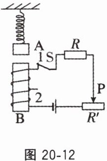 图中A是悬挂在弹簧下的铁块,B是电磁铁的铁芯,S是转换开关(S接1时连入电路的线圈匝数多,S接2时连入电路的线圈匝数少)。