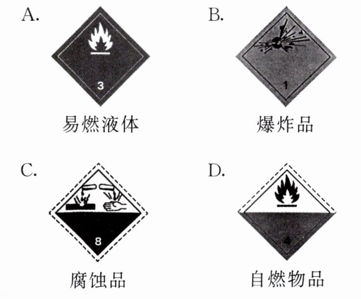 4. (2024·山西)为保护他人和自己的生命财产安全,运输火药、汽油、浓硫酸等危险化学品的车辆,必须使用重要的警示标志。其中在运输火药的车辆上应该张贴的是(