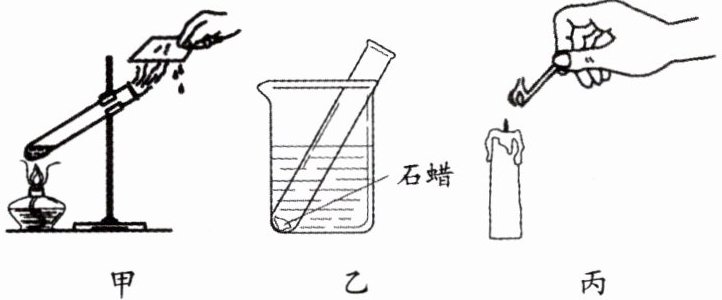 变化。(3) 丙:点燃蜡烛时,火焰附近的石蜡受热熔化,发生