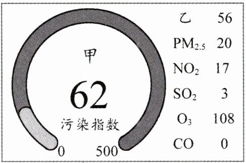 2. 下图为某品牌手机上显示的甲地主城区某日的空气质量报告,其中污染指数即指空气质量指数。下列说法错误的是(