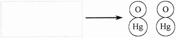 示意图(从左到右):2个汞原子(两个分开画的$◯_{Hg}$) + 1个氧分子($◯_{O}\ \ ◯_{O}$ ,中间用短线连接表示分子结构)