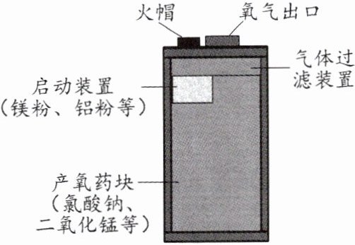4. 下图所示的氧烛是一种便携式、一次性供氧设备,在潜艇、航空等领域紧急情况下使用。已知氯酸钠分解和金属粉末燃烧均放出热量。启动时,撞击火帽产生热量引发金属粉末燃烧,继而引发氯酸钠分解产生氧气(另一种产物为氯化钠)。