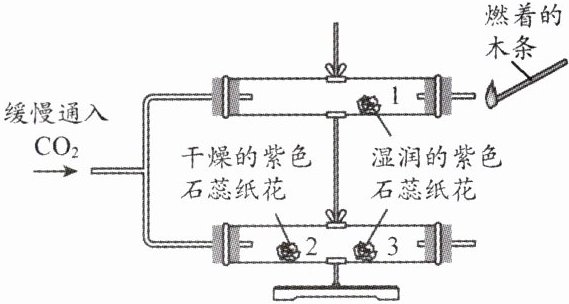 ;可证明$ CO_2$的密度比空气的大的现象是3 处湿润的紫色石蕊纸花比 1 处湿润的紫色石蕊纸花先变红色