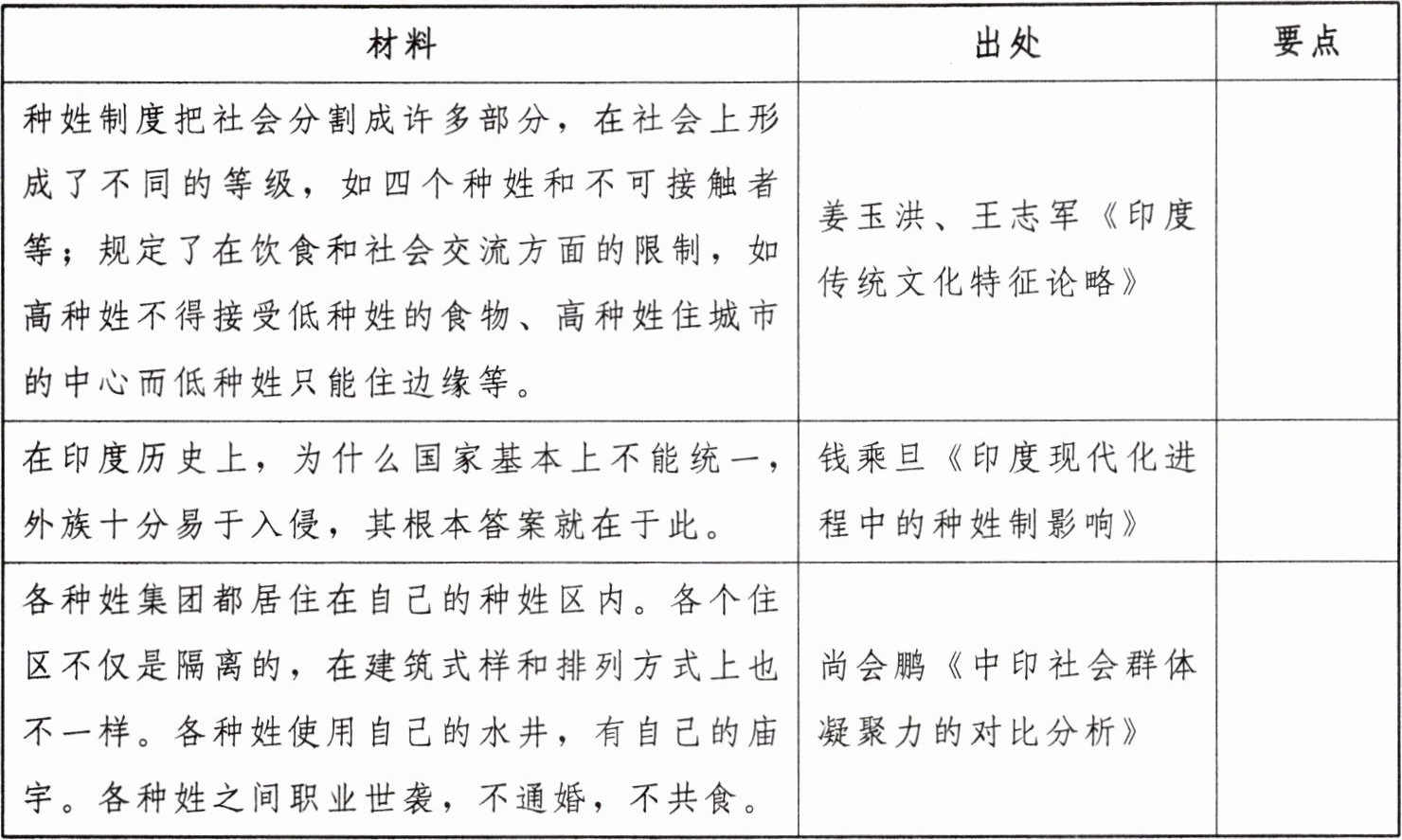 7. 某同学就“种姓制度塑造古印度的历史特征”搜集到下列材料,请你阅读材料,完成下列任务。
